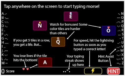 Od czasu do czasu przeglądam co tam ciekawego w aplikacja dedykowanych dla systemu Android pod kątem radiowych zabaw. Choć nie jestem zwolennikiem wszelkiego typu zabijaczy czasu, a jeśli już jakiś posiadam staram się go wypełnicz dobrą książką. Ta pozycja ujęła mnie gdyż nawiązuje do starych pozycji gier arcade z niesmiertelnych 8-bitowych czasów. Różnica polega na tym że nie odbijamy piłeczki, nie strzelamy z laserowych dział, a używamy ekranu jako klucza telegraficznego by zbić kolejne klocki. Poza tym nic tak nie przyśpiesz nauki jak możliwość zabawy i współzawodnictwa. Tak jak w pamiętnej klasyce i tu są klocki specjalne zamrażające ekran czy czyszczące go z wszystkiego co na nas leci :-). Także jeśli macie ochotę na chwilę zapomnienia, lubicie CW, a z Angry Birds wam nie po drodze to zapraszam do współzawodnictwa.